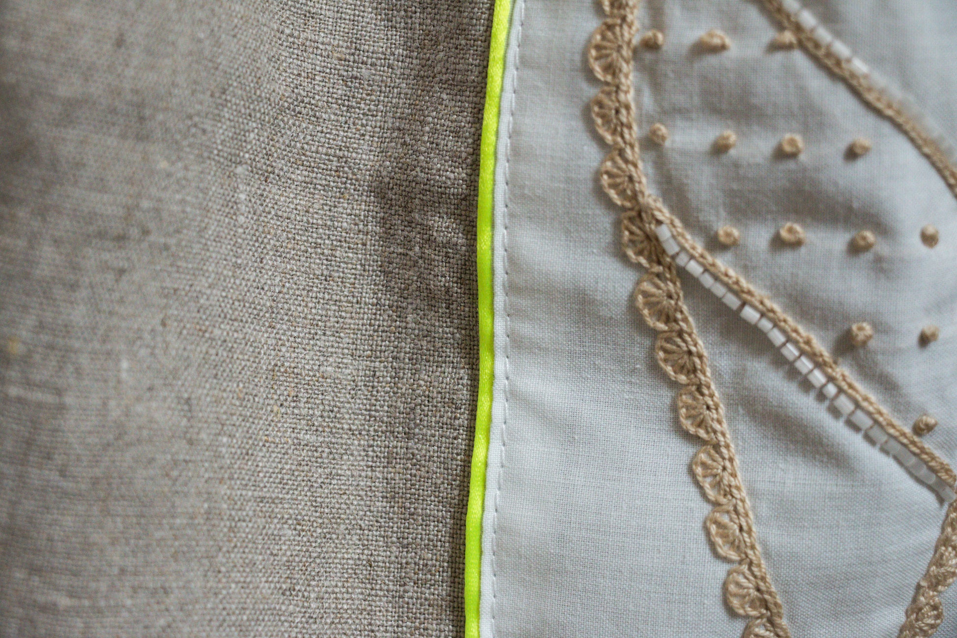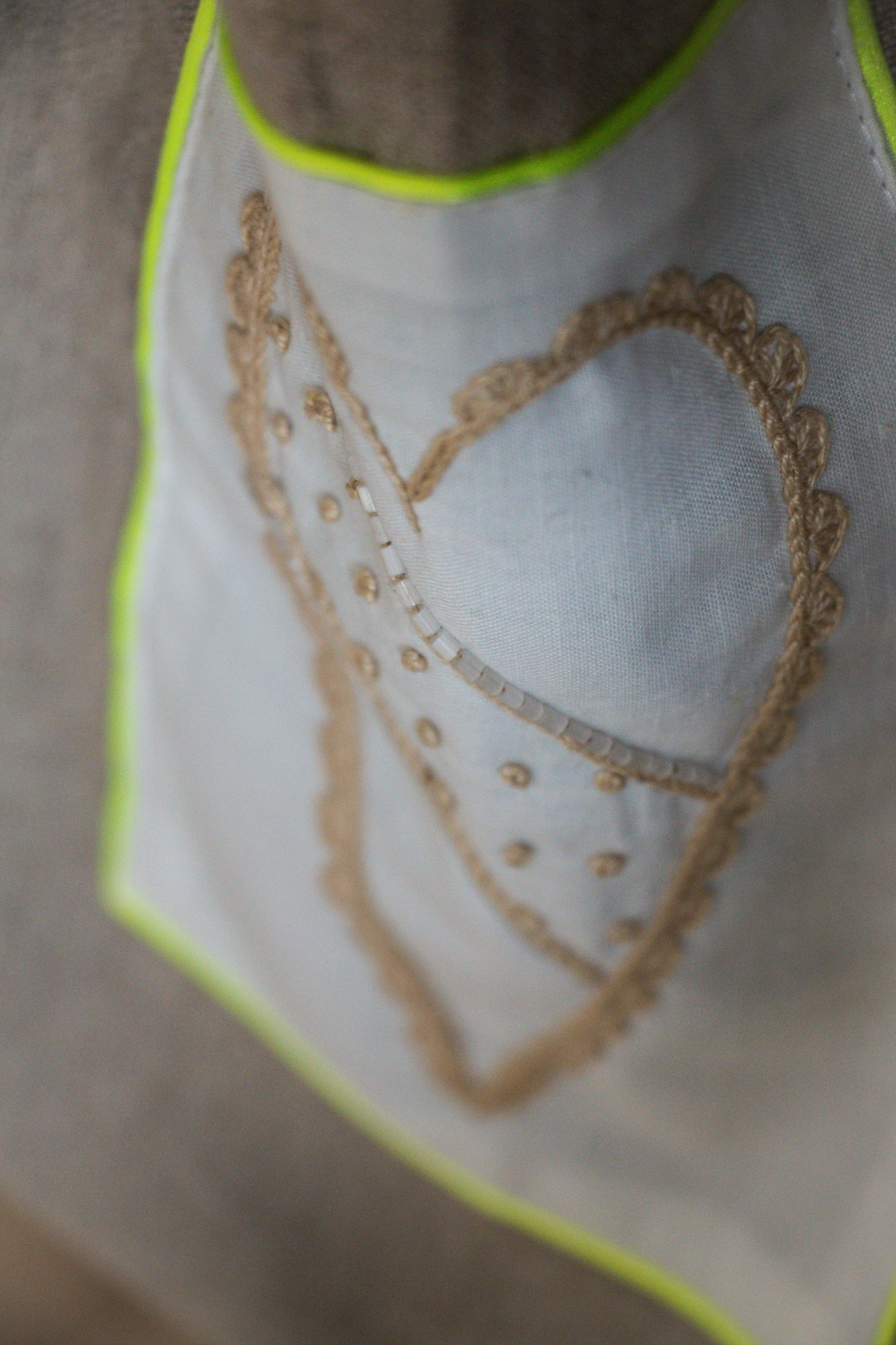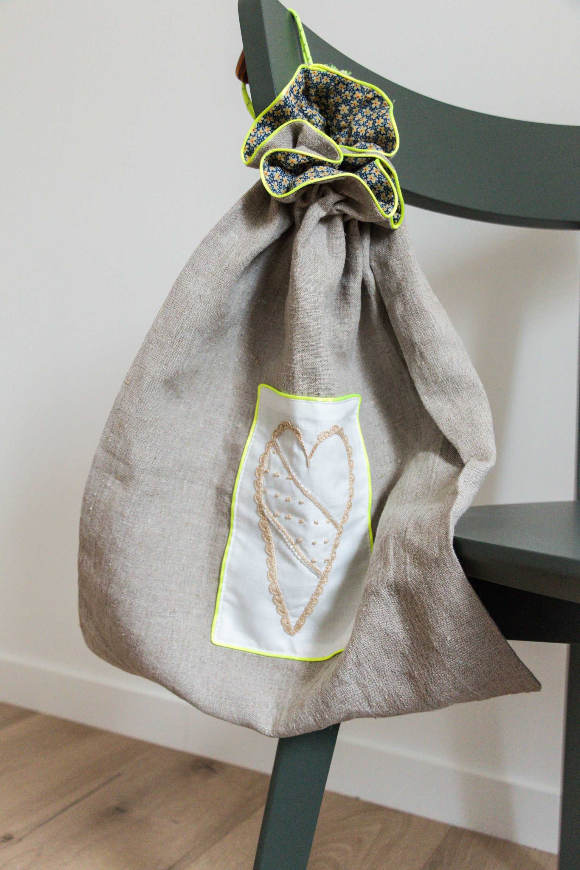 Sac pour lingerie réhaussé d un passepoil fluo. Entièrement doublé d un imprimé floral. Modèle qui combine l'élégance et l'artisanat. Parfait pour les déplacements et les voyages, ce sac rassemble les sous-vêtements avec raffinement dans la valise. Le coeur entièrement brodé à la main ajoute une touche inégalée, faisant de ce sac un accessoire essentiel pour les femmes.